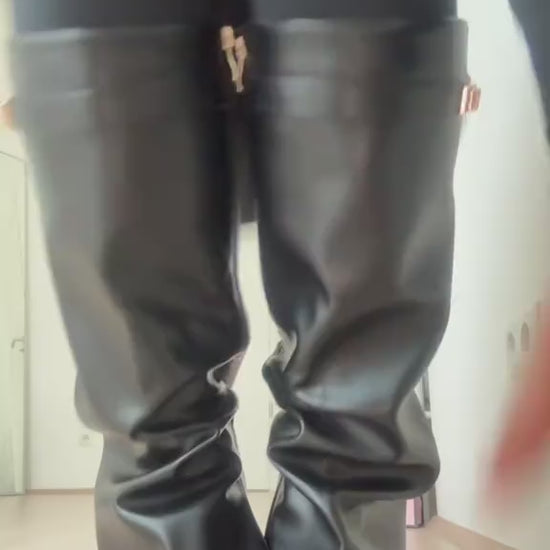 Estas BOTAS BLOCKED te brindan una altura de longitud de 38 cm y un tacón de 8.5 cm, proporcionando una apariencia elegante y estilizada. Además, puedes elegir entre un estilo afelpado o de cuero vegano, asegurando comodidad y versatilidad en tu uso diario.