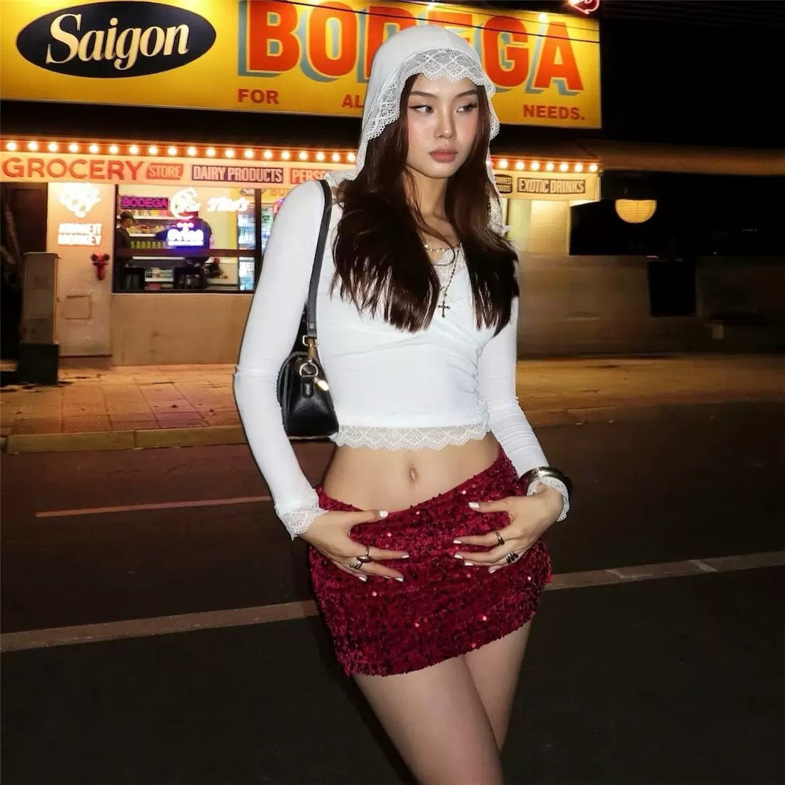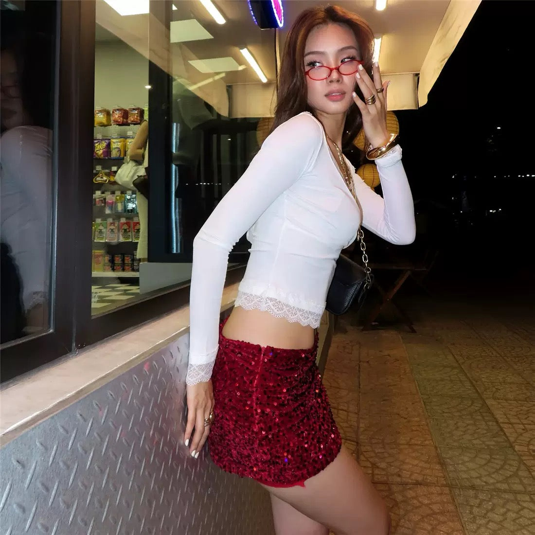 elástico, con lentejuelas cosidas