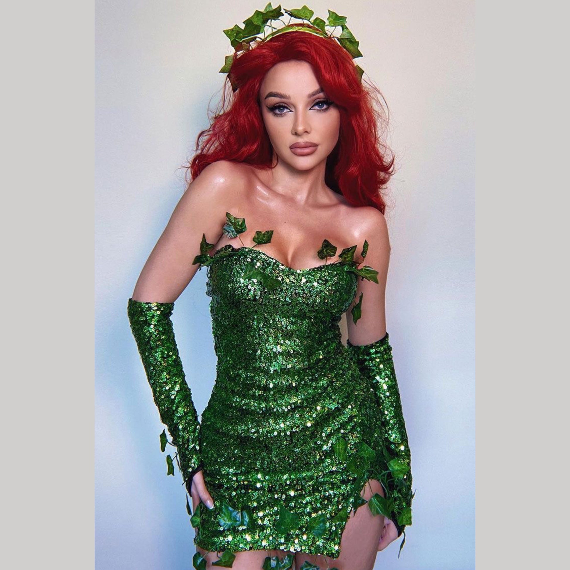 Conquista con la sensualidad y el misterio de uno de los villanos más icónicos de DC. Este set incluye un vestido brillante con lentejuelas que resalta con cada movimiento, acompañado de vincha, guantes largos y hojas decorativas que completan el look de la seductora enredadera. Su diseño viene en tallas completas (S, M, L, etc.), asegurando un calce cómodo y estilizado. Perfecto para brillar (literalmente) y destacar en cualquier fiesta de Halloween. 🌿💚