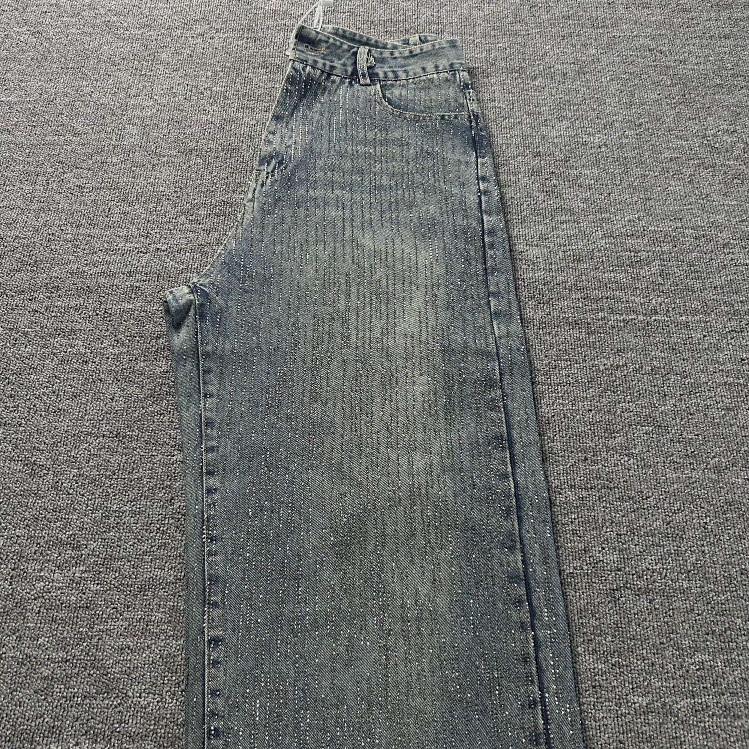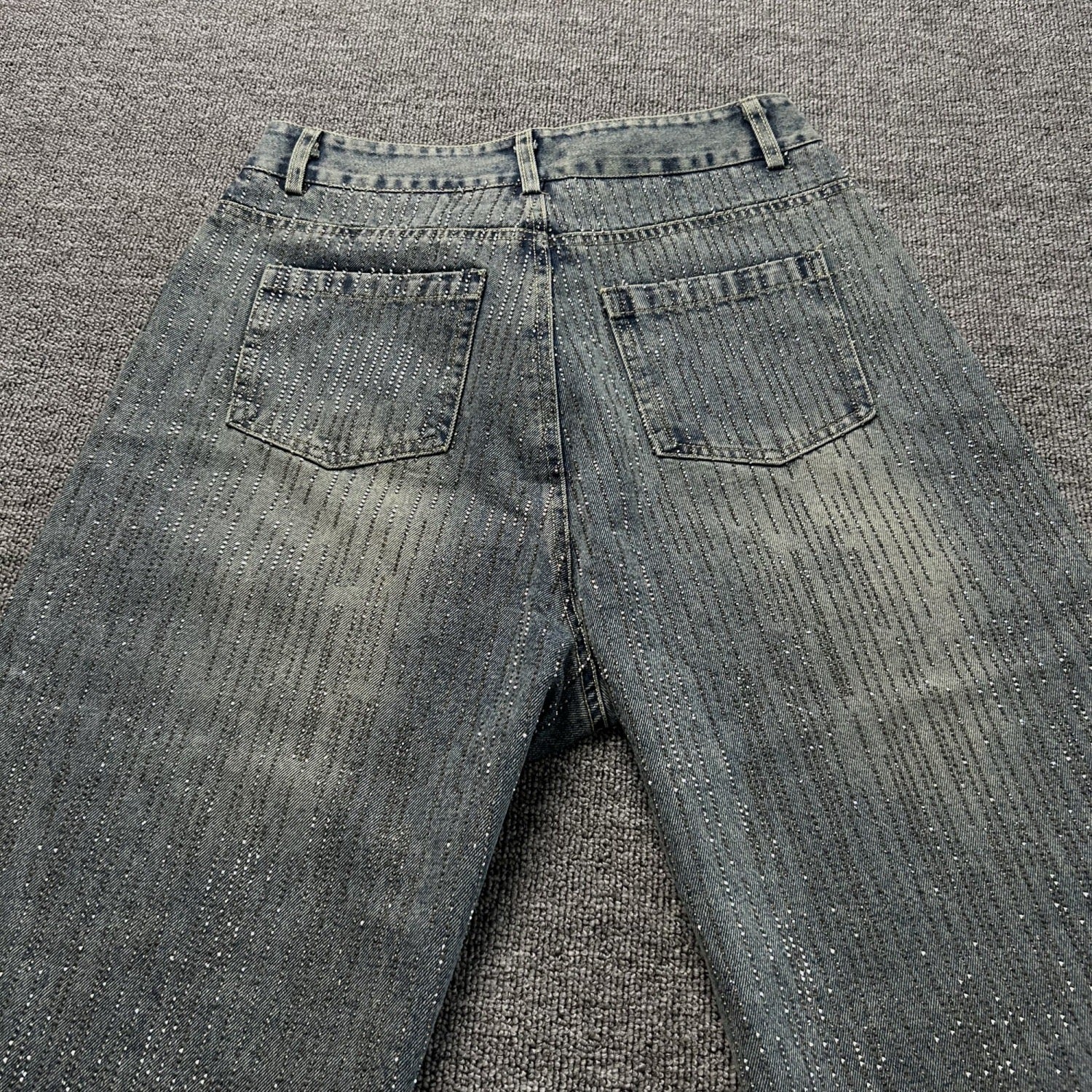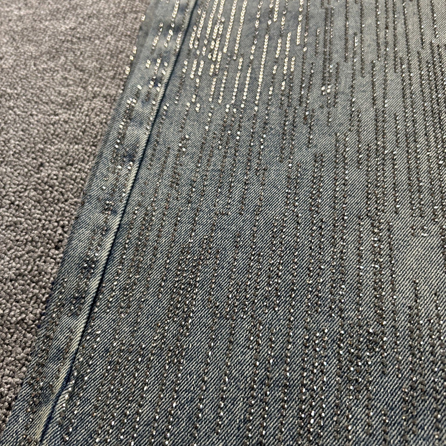 En un elegante tono grisáceo, está cubierto de pedrería de cristal premium en la parte frontal y posterior, ofreciendo un brillo deslumbrante que no se desgasta ni pierde intensidad.